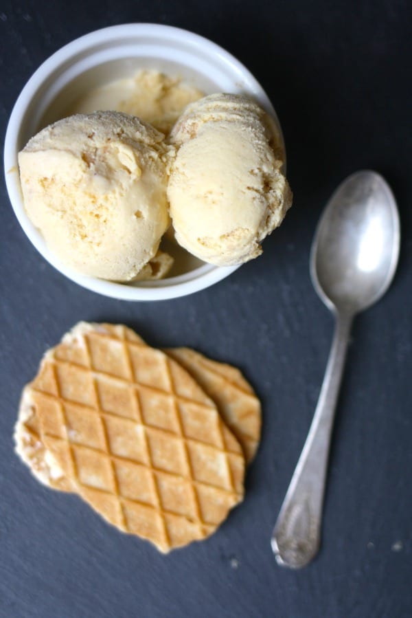 I love this time of year when pumpkin recipes are at their best. Since Mason, loves ice cream and oddly enough he loves pumpkin {he is my picky eater) I combined the two along with his favorite butter waffle cookies. The perfect birthday treat.