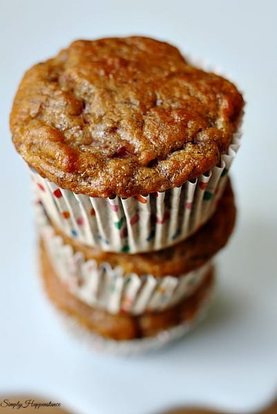 Yes I said {hidden} bananas above.  When life gives me a chance to add in a fruit or two, I take it!  If I have some chocolate chips mixed into the batter, my picky eater doesn’t notice the yummy chunks of fruit that make these muffins sensational. A little fruit, a little chocolate, and oh remember, I mentioned these are light….why yes they are.  They are made with applesauce and a little brown sugar.  So do give yourself a break today.  I know I rewarded myself with a muffin afternoon pick me up.