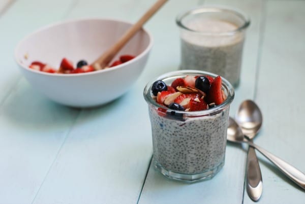 Refrigerate the pudding overnight. By morning it will be perfectly chilled, thick, and completely delicious! Top with fresh berries, sliced almonds, and a drizzle of pure maple syrup.
